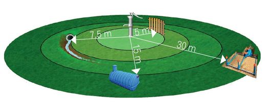 Usytuowanie studni względem sąsiadujących obiektów podlega przepisom ministerialnego rozporządzenia. Zgodnie z nim ujęcie wody musimy umieścić co najmniej: